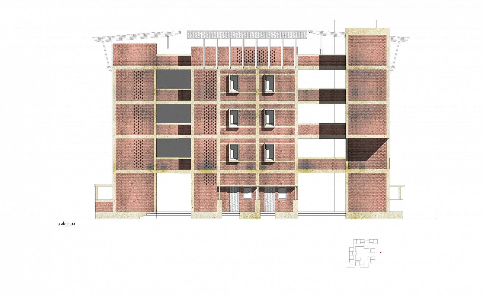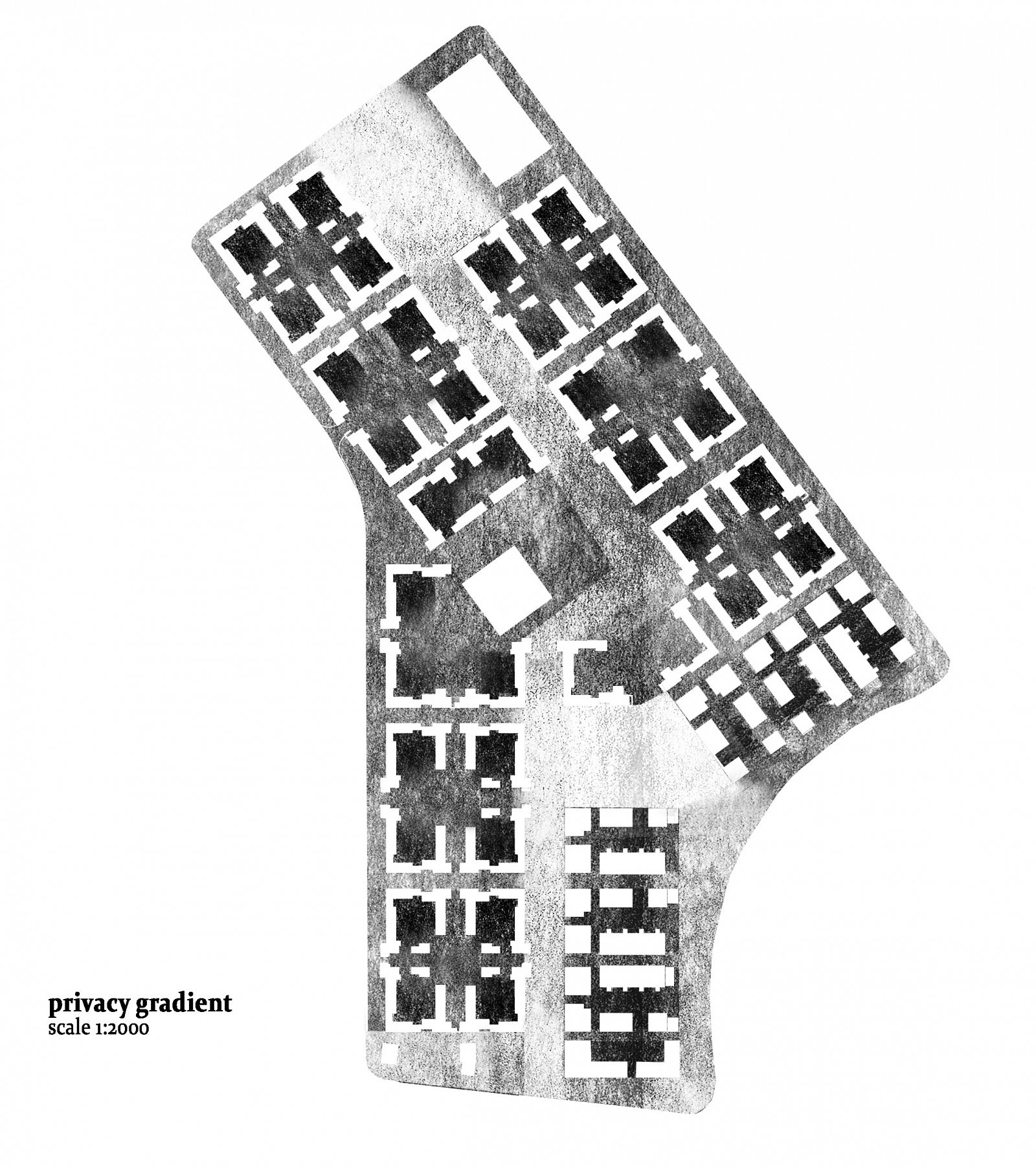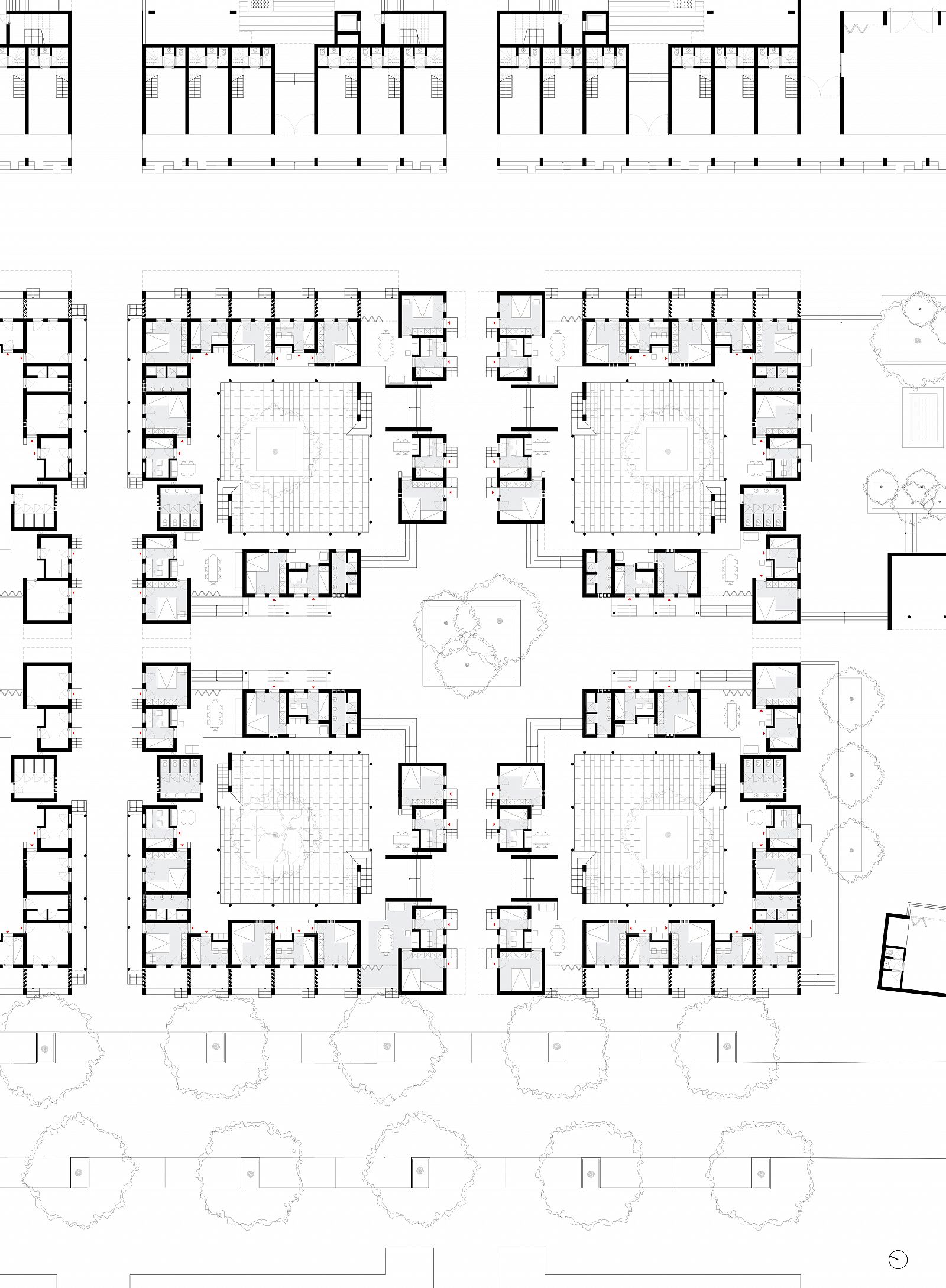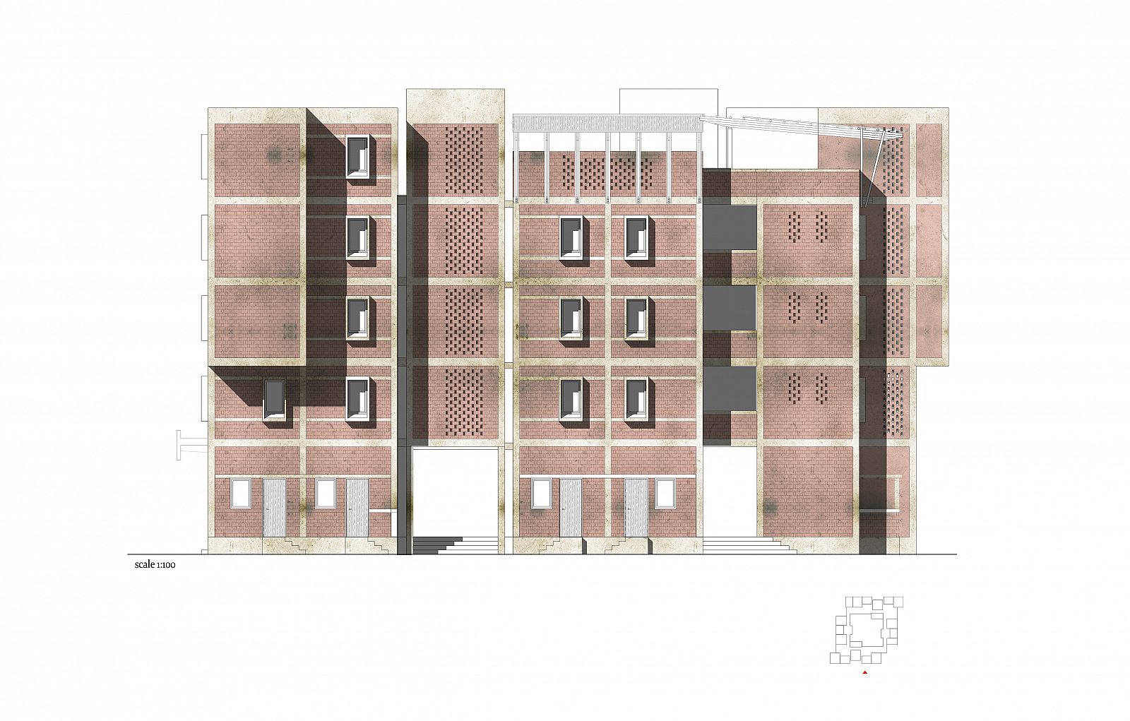 In order to extend the realm of the dwelling to the scale of the city, the design strives to provide the streets with countless possible intimacies in the form of niches and pockets that might cater for the coexistence of different speeds and rhytms of events. The sequence of spaces that leads to the private realm is designed in such a way as to try and establish an ever-increasing level over privacy. The system of interlocked courtyards does not only rapresent a climatic protection from heat and dust, but also aspires to be a place where social encounters might occur.