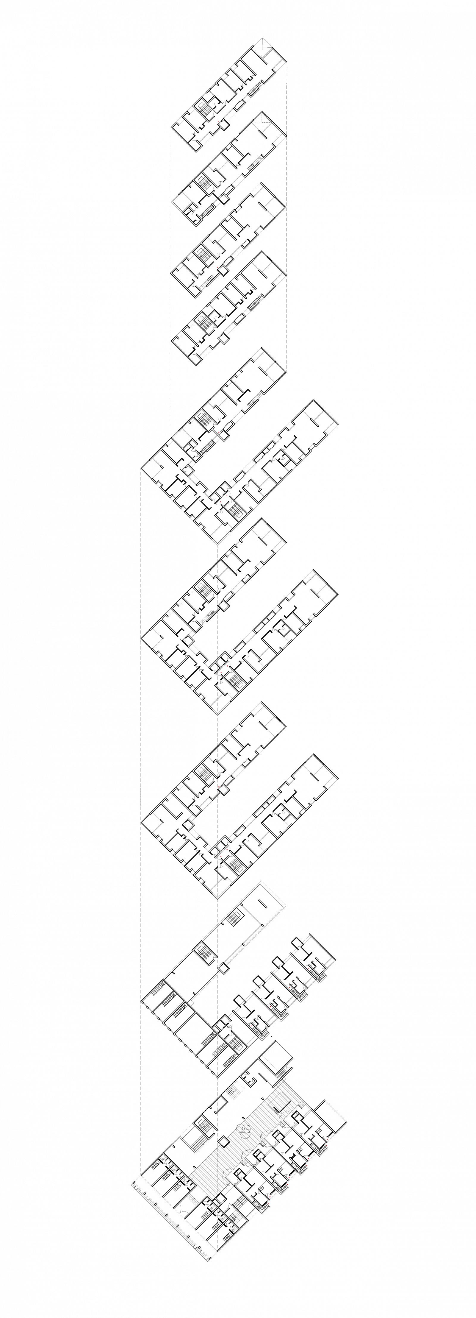 Due to the minimal size of the units, the gallery is designed as a space that can accomodate a wide range of activities. In fact, the clustering system provides the space for circulation with compressions and decompressions that might stimulate the extension of the private space into the collective one.
