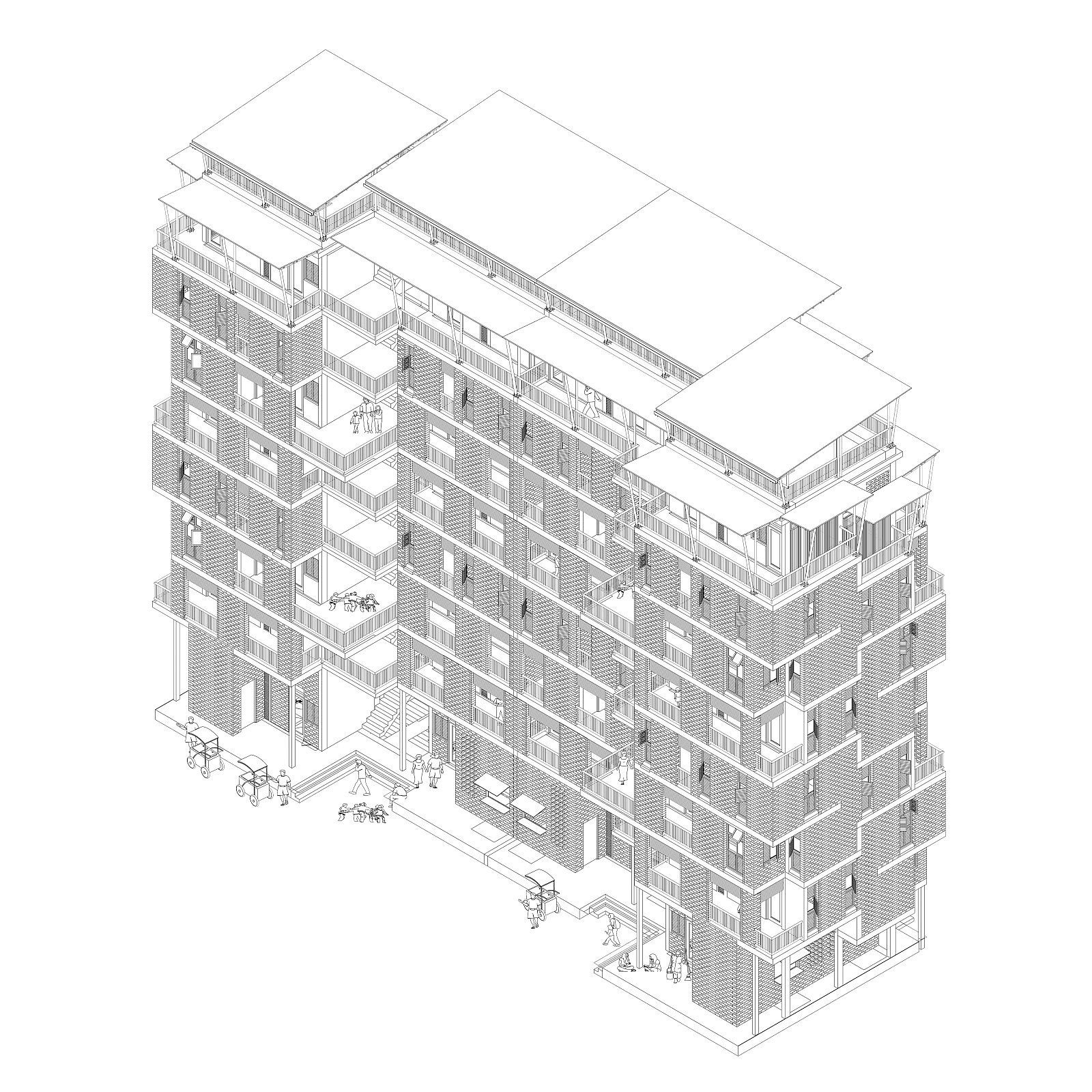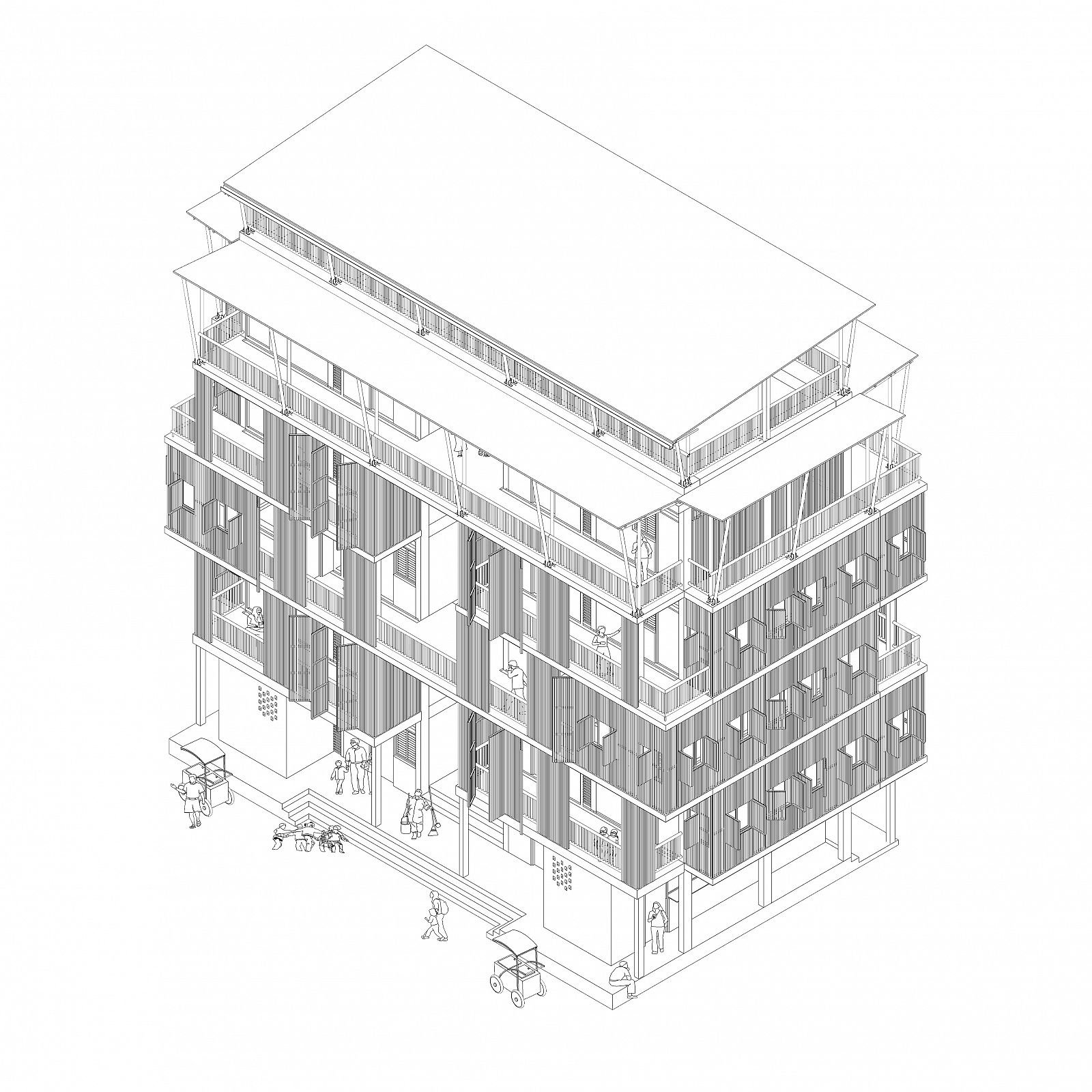 The chosen site for the graduation project demonstrates how the shortage of affordable housing becomes a problem in the Mumbai, how this issue has been responded, and how these actions affect the living quality. The challenge is how to generate an alternative for the provision of affordable housing by taking into account not only the issue of density, but enhancing the living quality of the dwellers. The issue of housing shortage which led to the emergence of squatter settlements has been confronted with various approaches by countries around the globe. Many attempts including slum Up-grading and Slum Rehabilitation Program have been endeavored. Currently, the In-situ redevelopment program is seemed as an affordable example in providing affordable housing since it cut down the land cost for the housing provision. Many one-story row houses, Baithi chawls area, have been seen as a potential property to be redeveloped becoming four to five storeys residential building and built on the same footprint. This arbitrary attempt compromises the dwellers to live in an extremely cramped and dense area.