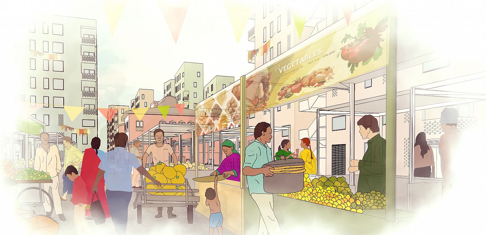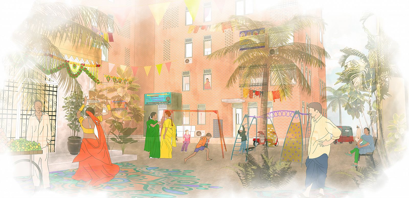 Drawing: © Rafaela Ahsan, MSc3/4 Global Housing Graduation Studio Mumbai