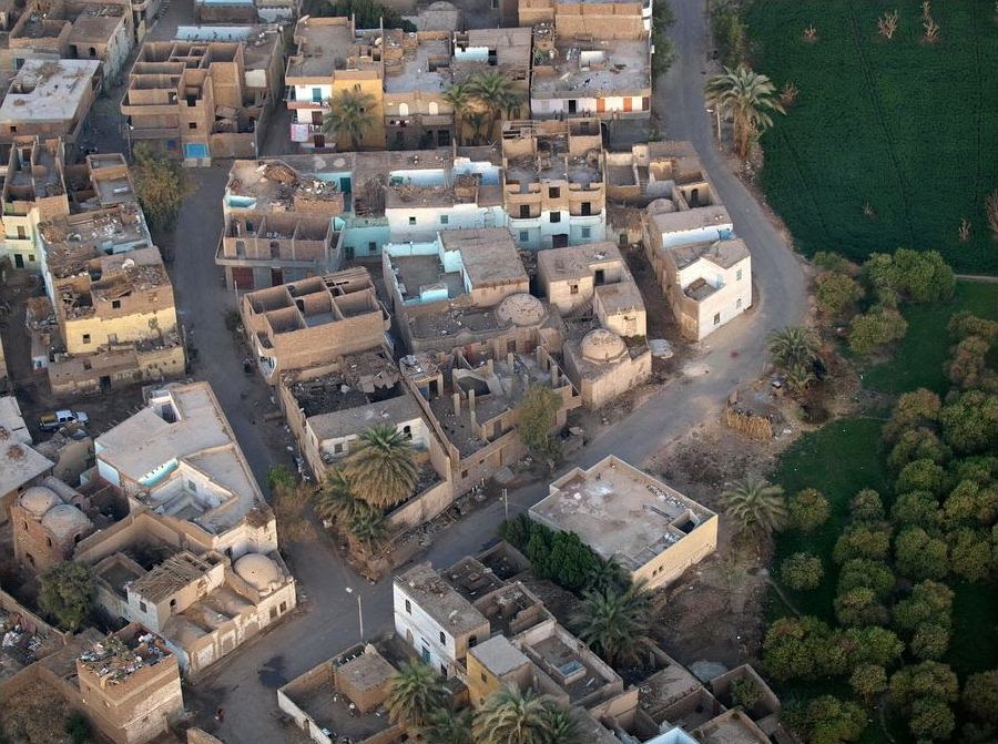 In the nineteenth century, Gourna was a small farming settlement at the foot of the Theban necropolis, near present-day Luxor. By 1945, it had evolved into a village of approximately 7,000 inhabitants that subsisted mainly on ransacking the many tombs dating back to the days of the ancient Egyptians. The Egyptian Department of Antiquities, in an effort to solve this problem, decided to move the village to a location closer to Luxor. Hassan Fathy was commissioned to design and build a completely new village for the resettlement of the Gournii.