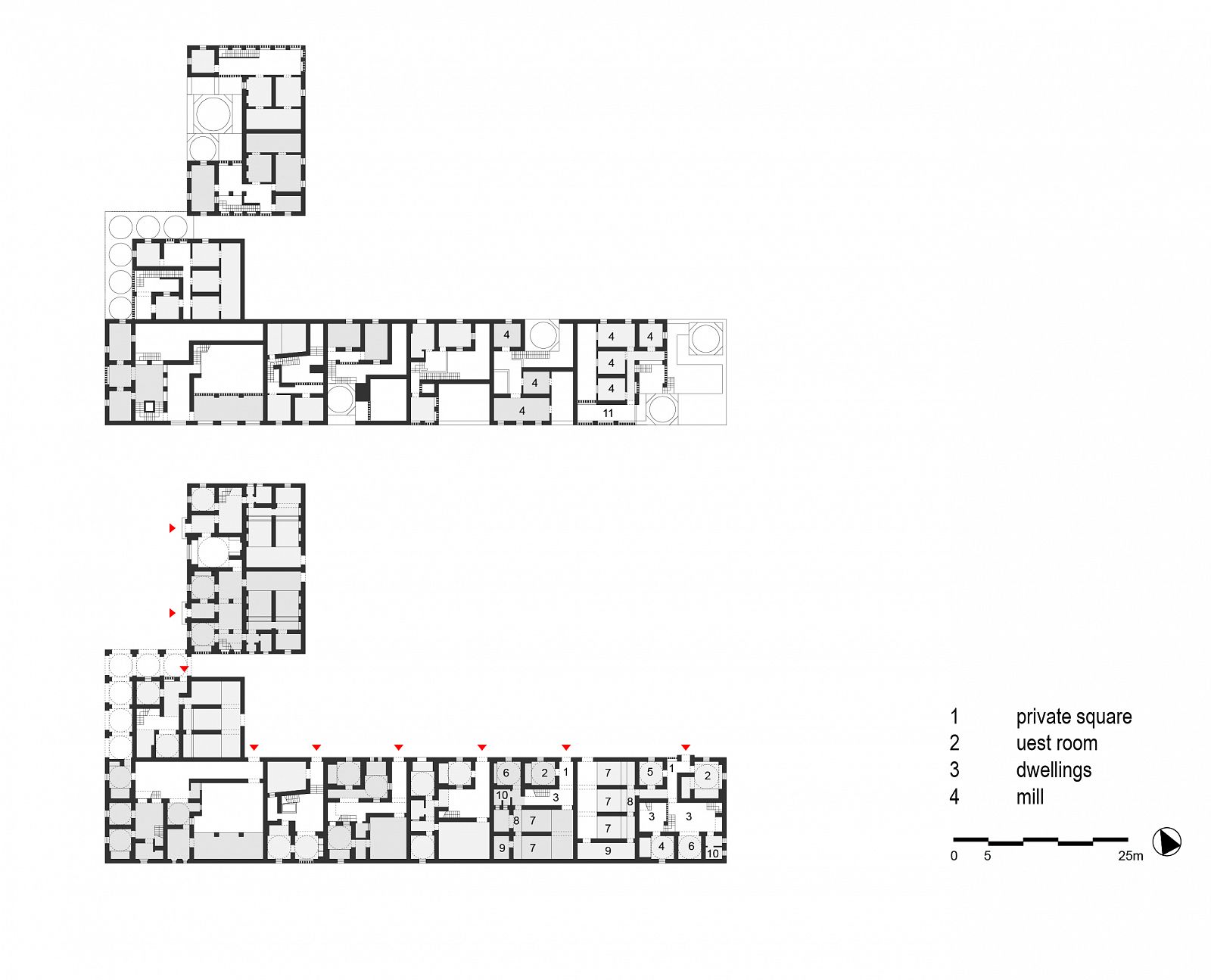 Despite sincere attempts to design New Gourna in a socially responsible manner, the Gournii refused to move into their new village. To Fathy’s great disappointment, only onefifth of the village was ever completed and years later, in 1961, only part of the village was inhabited. Over the years, many new dwellings were added and Fathy’s houses fell into disrepair. Mud-brick structures require a lot of maintenance, which the residents simply could not afford. The groundwater level also rose, causing the salt from the sandstone foundation to dissolve and the dwellings to subsequently collapse. Alarmed by its worrisome condition, UNESCO initiated a project for the preservation and reconstruction of the village in 2009. Unfortunately, the project was temporarily discontinued in 2011 due to the Egyptian Revolution.
