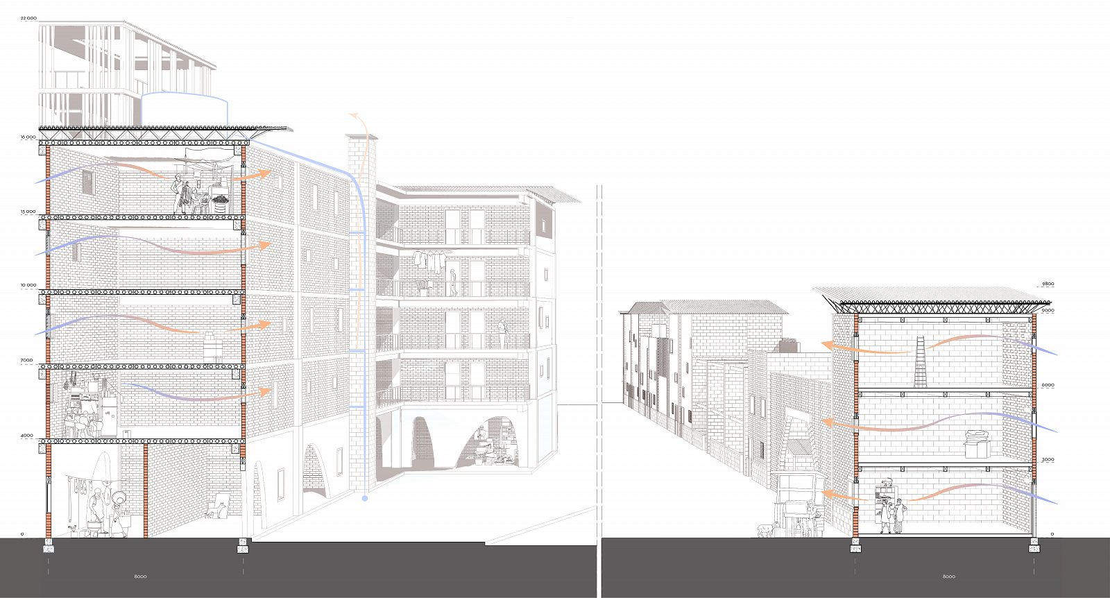 The project is an endeavour to empower the lowest income groups in urban Ghana, reshaping social and economic perspectives to synthesise Ghana’s self-organizing capacities. Balancing grassroot initiatives and top-down planning, the phased proposal seeks to embrace the current situation of encroached urban settlements. Offering insights for governmental parties such as TDC to overcome commercial speculation of the private sector - marking the increasing segregation of income groups - the proposed strategy of organised encroachment looks at a future in which social, climatological and economic instabilities are mitigated by a gradual, inclusive and durable development.