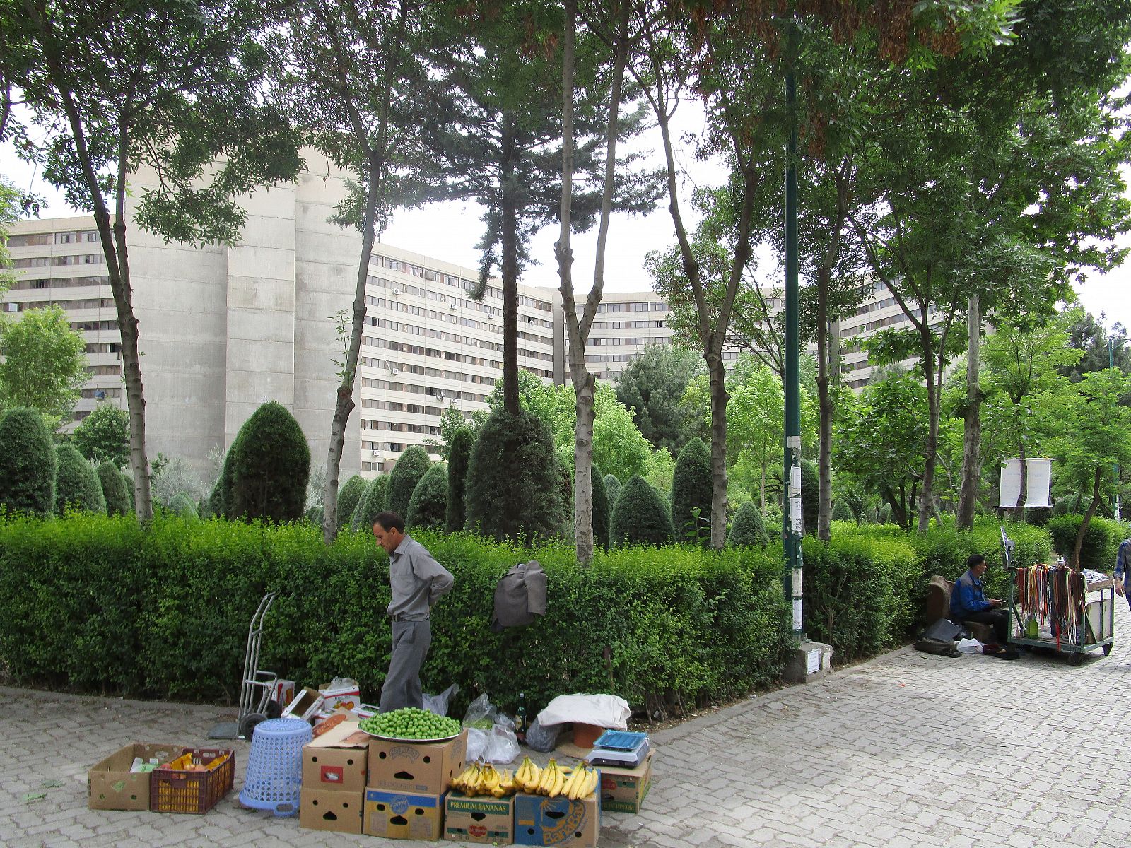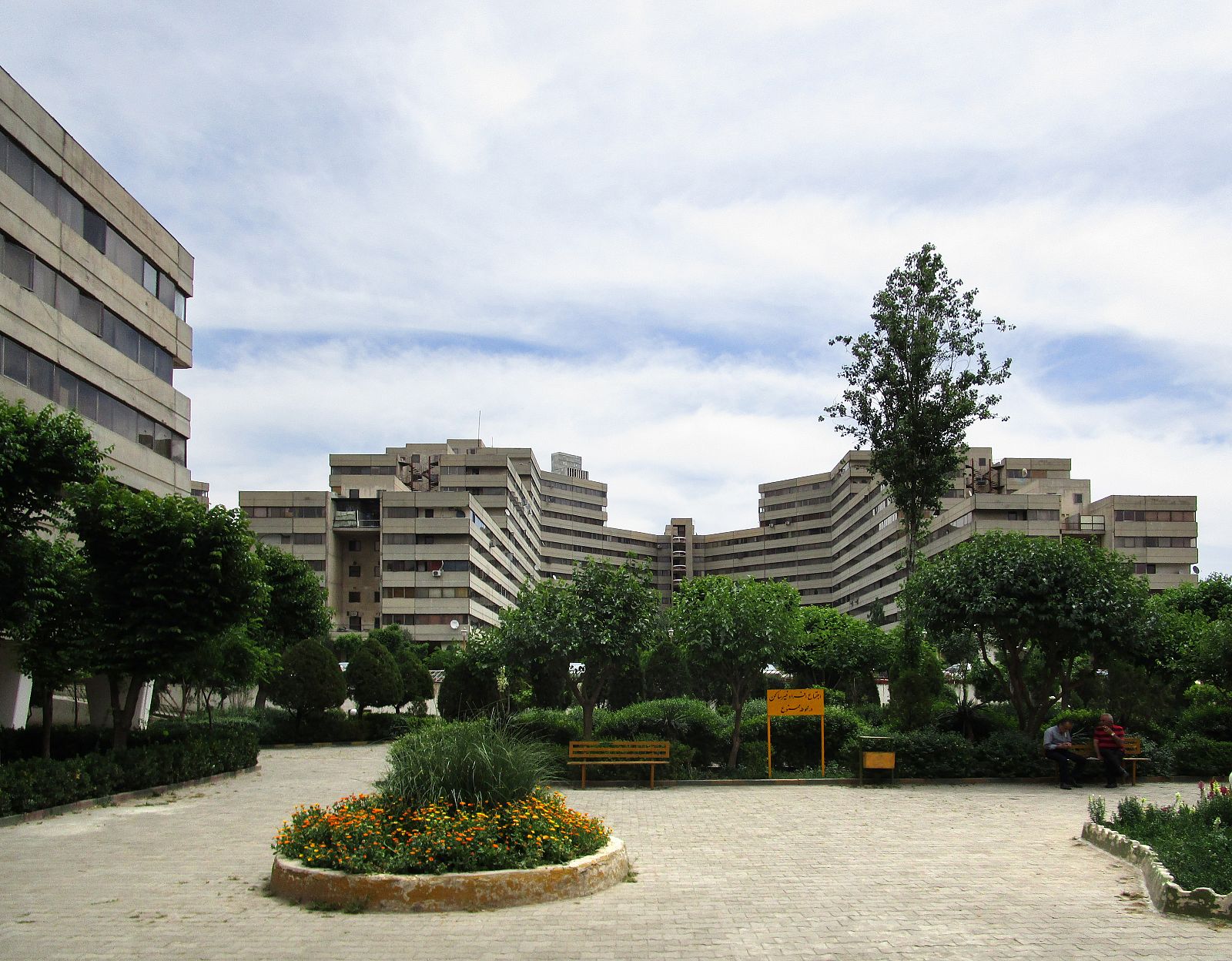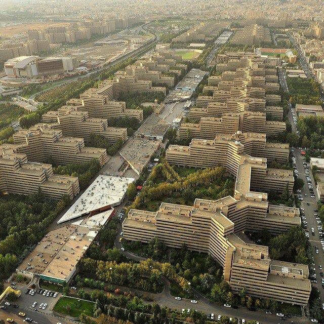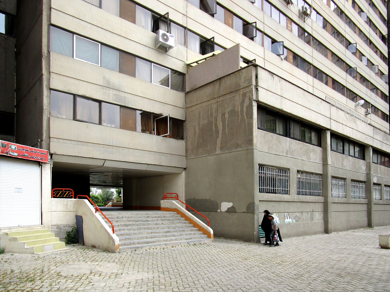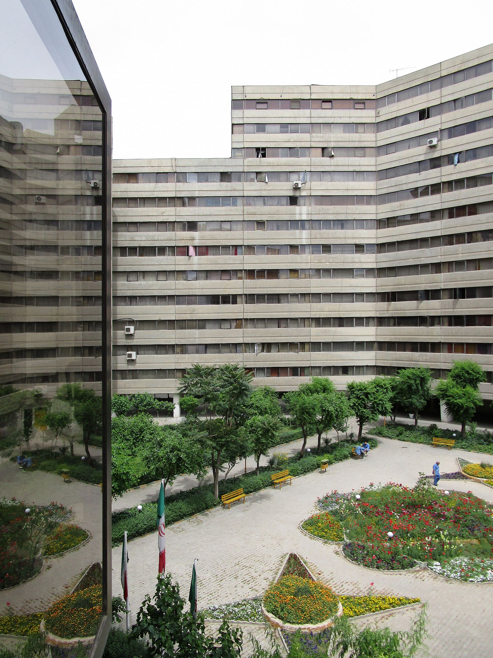 The series of concrete flats sit starkly in an open space and dramatically ignore the traditions of Iranian housing. In the original plan, green zones and pools were projected in the spaces between the semi-hexagonal blocks, but after the Islamic revolution these luxurious elements were not completely realized. However, a commercial area was added to Ekbatan as a new type of urban public space, which was the most remarkable influence of Gruen on this project.