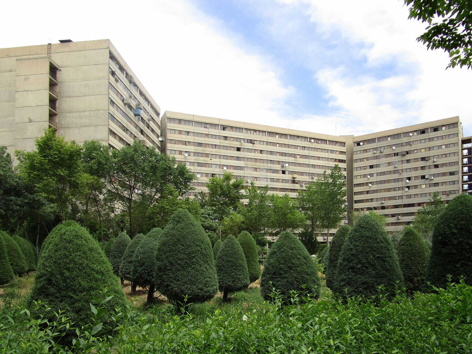During the 1960s and 1970s, the close economic ties between the USA and Iran encouraged many American firms to develop various mega-projects in Iran. In 1966, the Iranian Ministry of Housing asked Victor Gruen to prepare a comprehensive master plan for Tehran in collaboration with his Iranian partner Abdolaziz Farmanfarmaian. Gruen’s urban theory, entitled The Heart of our Cities, is based on a hierarchy of urban structures in which the commercial centres have priority. He envisaged the metropolis of tomorrow as a central city surrounded by ten additional cities, each with its own centre. This resembled Ebenezer Howard’s Social Cities, in which a central city was surrounded by a cluster of garden cities. These ideas inspired Gruen to expand the border of Tehran and plan many new suburban residential districts. As a result of his planning, in 1968 a pilot project known as Ekbatan was commissioned by the Tehran Redevelopment Corporative Company on the west side of Tehran. Rahman Golzar and Jordan Gruzen of the American office Gruzen & Partners were asked to collaborate with Victor Gruen to design the biggest residential complex in the Middle East at the time: 15,500 housing units for about 70,000 inhabitants in an area of 221 ha.