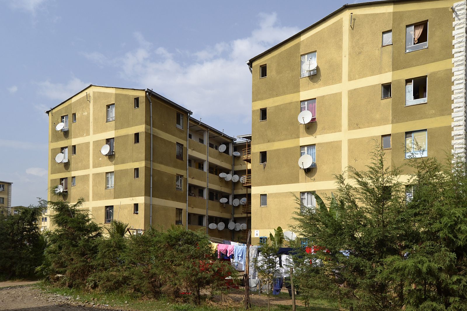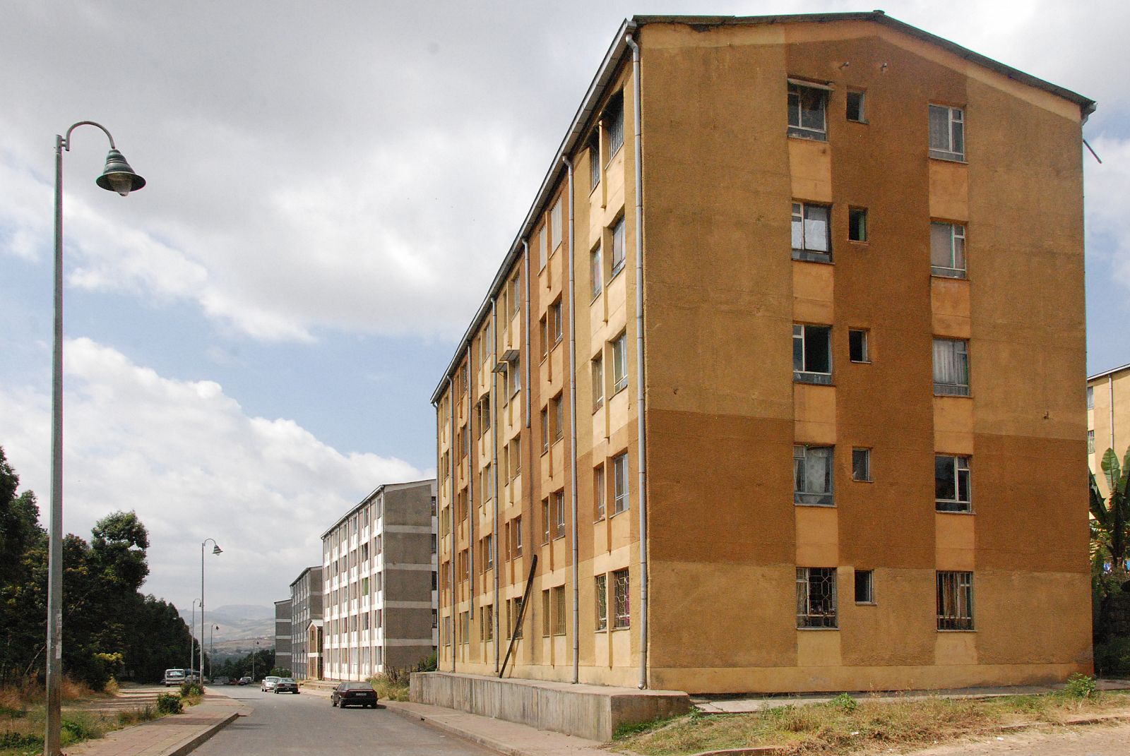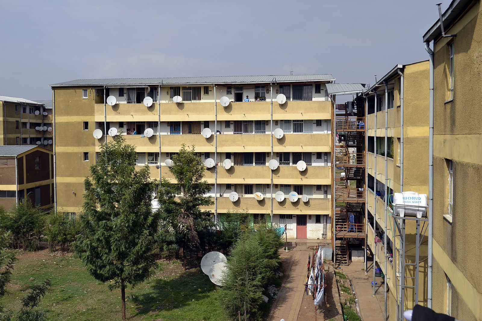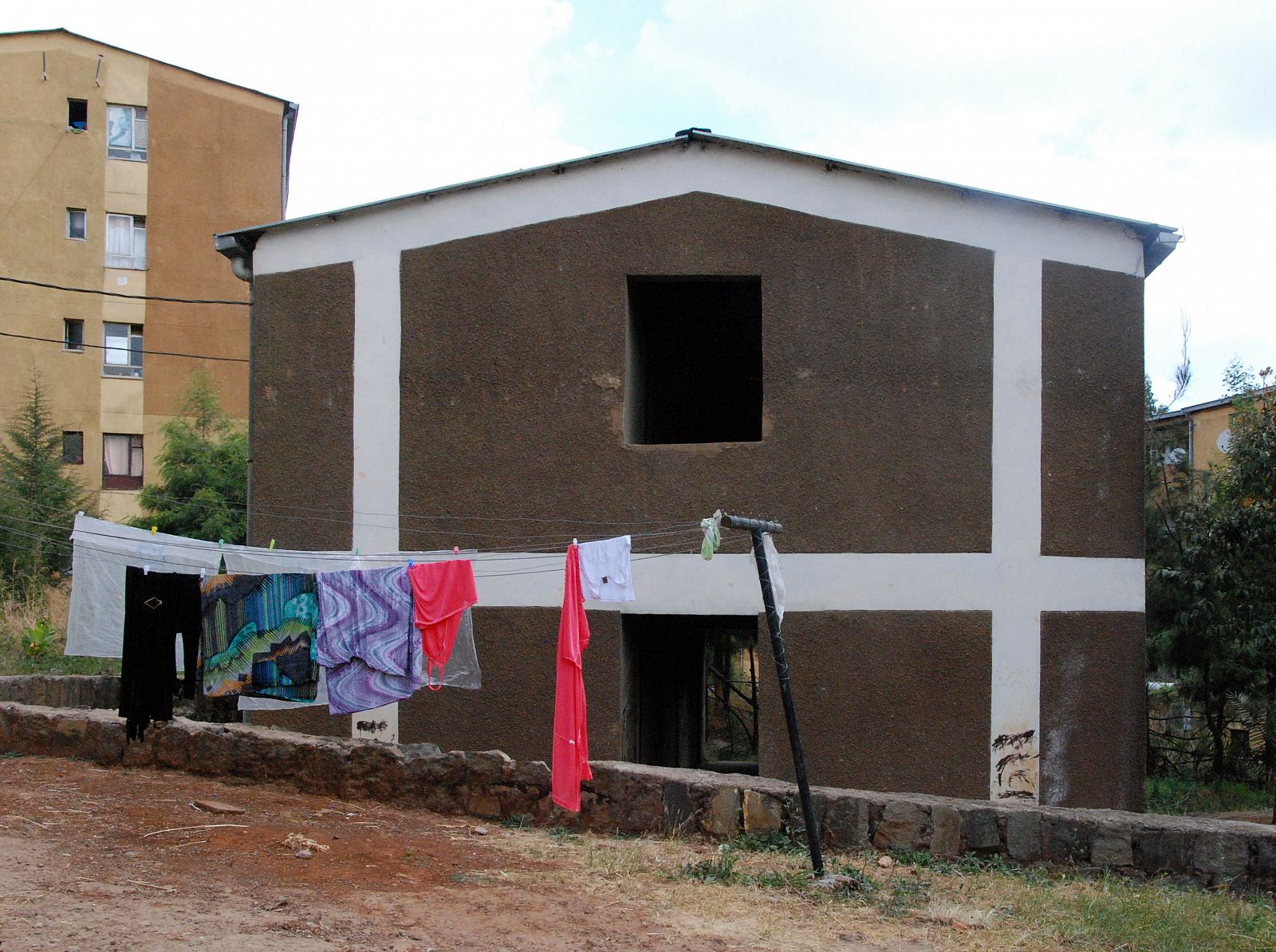 Addis Ababa, the capital city of Ethiopia, is one of the 35 fastest-growing cities in the world. According to predictions by UN-Habitat (2015), in this decade the population of Addis will grow from 4.1 to 4.9 million. Even though it is always debatable how slums are defined in Addis Ababa, UN-habitat estimates that 76.4 per cent of the total urban population lives in slums or under substandard conditions. In 2004, the Ethiopian government started the so called ‘Grand Housing Program’ to eradicate the slums and to care for the urban poor. Cross-cutting agendas here were: 1) to create 200,000 jobs; 2) to promote the development of 10,000 small scale enterprises; 3) to deliver 6,000 ha of serviced land; and 4) to enhance and build the capacity of local contractors, consultants, etcetera. Initial pilot projects were tested in the city of Addis Ababa and later the programme was scaled-up to a nationwide housing initiative. So far, in Addis Ababa alone, 240,000 housing units have been built. Mainly built as condominiums, the dwellings are infills of small vacant lots in the existing city fabric, or are a replacement for slum-cleared areas. But a large number of these condo sites are located on the fringes of the city, like the Mickey Leland Condominium Site.