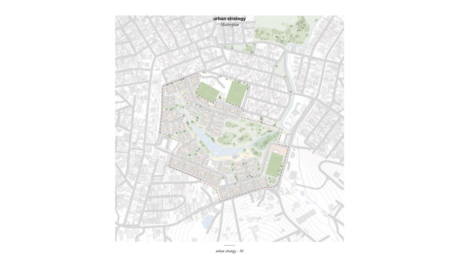 The project seeks to create a balance between social and climate resiliency to address the challenges of environmental risk and resettlement. The project proposes a new social housing system, built on the principles of clustering and the Radburn Plan, to achieve an urban design which integrates public space with rainwater flows, public infrastructure, and housing. The project location, Jardim Campinas in Grajaú, São Paulo, is used as a framework for the urban system to rehouse displaced residents from various communities onto one site. The socio-ecological design approach is implemented at each scale – urban plan, sector, cluster, and dwelling unit. The design aim is a renewal of the urban fabric, by building upon existing social and ecological networks to reinvigorate social connections and relationships between natural and built environment.