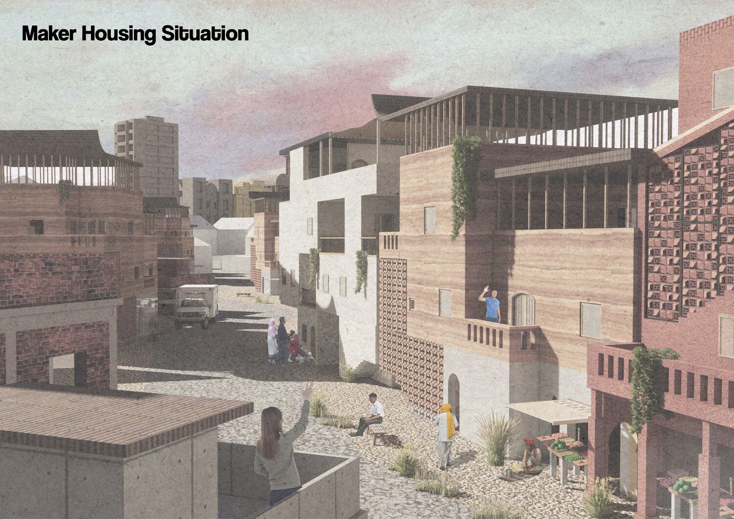 Maker Housing proposes a design toolkit aimed to accommodate all urban conditions of the village and surrounding area. By investigating craftsmanship in every scale from brick to urban the project allows for identity and collective memory of the village to not only thrive but also protect its future survival.
