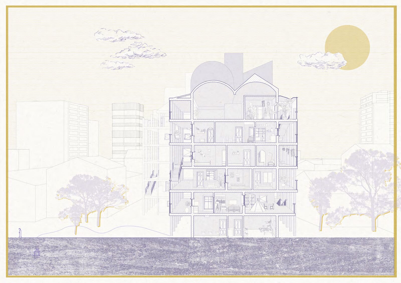 The exponential population growth of Navi Mumbai and the Global South results in urgency for housing, quality of life and resources. Maker Housing proposes through architectural design and spatial organization an alternative mode of living in these unique urban contexts. Gaothans is a Marathi word which is derived from the words ‘Gaon’ (which means ‘village’). Many of these villages have become under threat from urbanization to cater to the over demand in population. The project aims to use vernacular construction materials and methods to promote sustainable architecture and traditional craftsmanship to reignite to usage of original techniques. Due to India’s colonial past many artisans abandoned their ancestral trade to find a more sustainable and stable income. This damaged the self-sufficient village economy and integrated poor infrastructure into village and slum communities in Navi Mumbai.