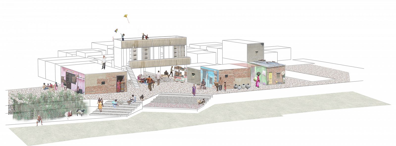 Even architecture as an autonomous discipline was considered suspect, as it is easily associated with the ruling classes that are held responsible for the misery in the megacities. This raises questions as to what it is that architects might contribute besides a form of ‘smart social engineering’. This question is also pivotal at the Habitat Design Studio in Ahmedabad.