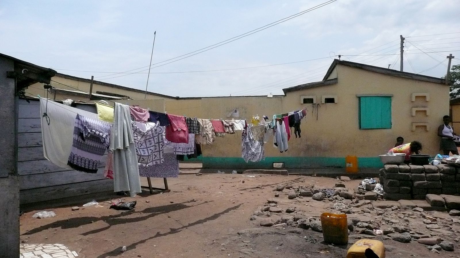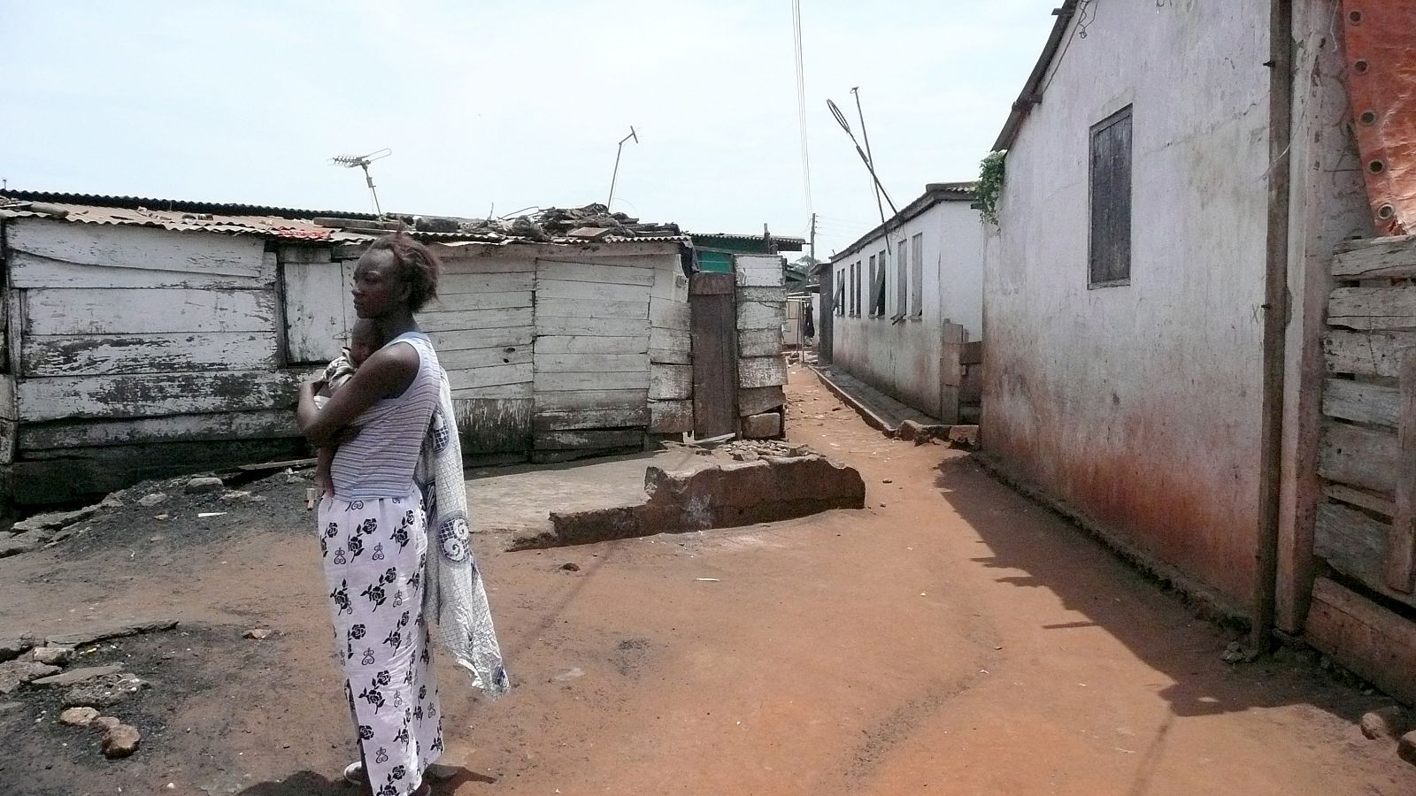 By now, Fry and Drew’s creation has become a slum. The choice to respect Tema village as an autonomous entity to safeguard the identity of the villagers has made the area into a ghetto: living circumstances are worse, housing and amenities are cheaper and less attractive than in Tema. The original houses are hardly recognizable between the many extensions and ‘illegal’ buildings erected between, above and around them. It is a poor, polluted area, surrounded by industry, that looks longingly at its next-door neighbour Tema, where everything seems better and more hopeful.